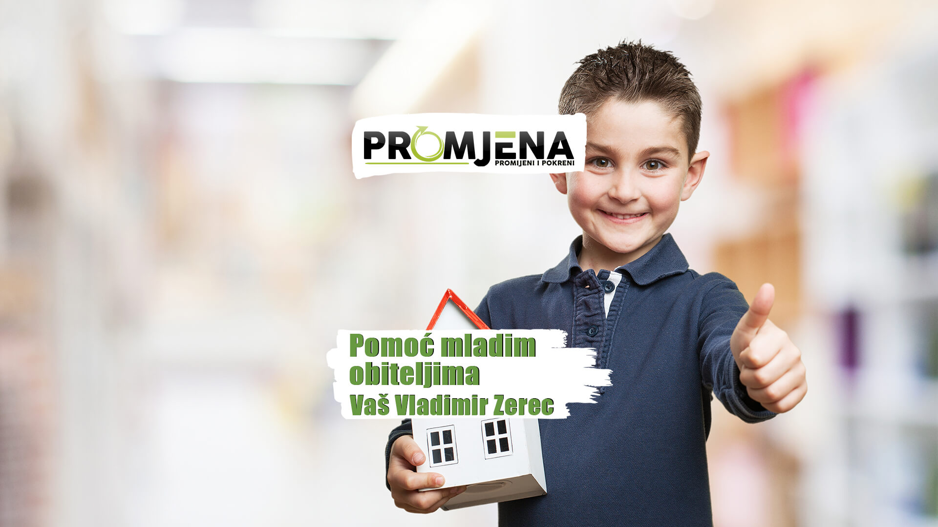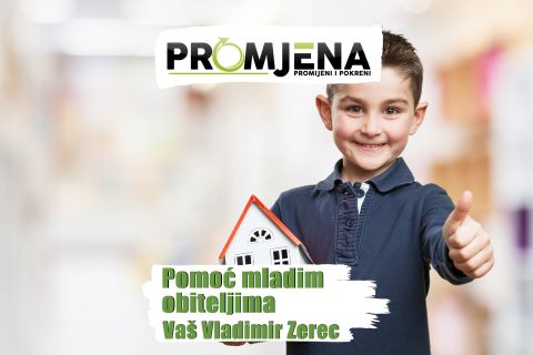 Isto tako jedan od važnijih segmenata demografskog razvoja i obnove je kvalitetno i sigurno stambeno zbrinjavanje mladih obitelji. Velika olakšica za mlade obitelji prilikom kupnje ili izgradnje prve nekretnine je i oslobađanje plaćanja komunalnog doprinosa u cijelosti koju želim osigurati. Isto tako treba osigurati poticaje za mlade obitelji za rušenje i obnovu starih kuća te gradnju i kupnju prve nekretnine. Besplatan smještaj djece u jaslicama i vrtićima, odnosno koje subvencije su potrebne obiteljima s više djece prema kategorizaciji.