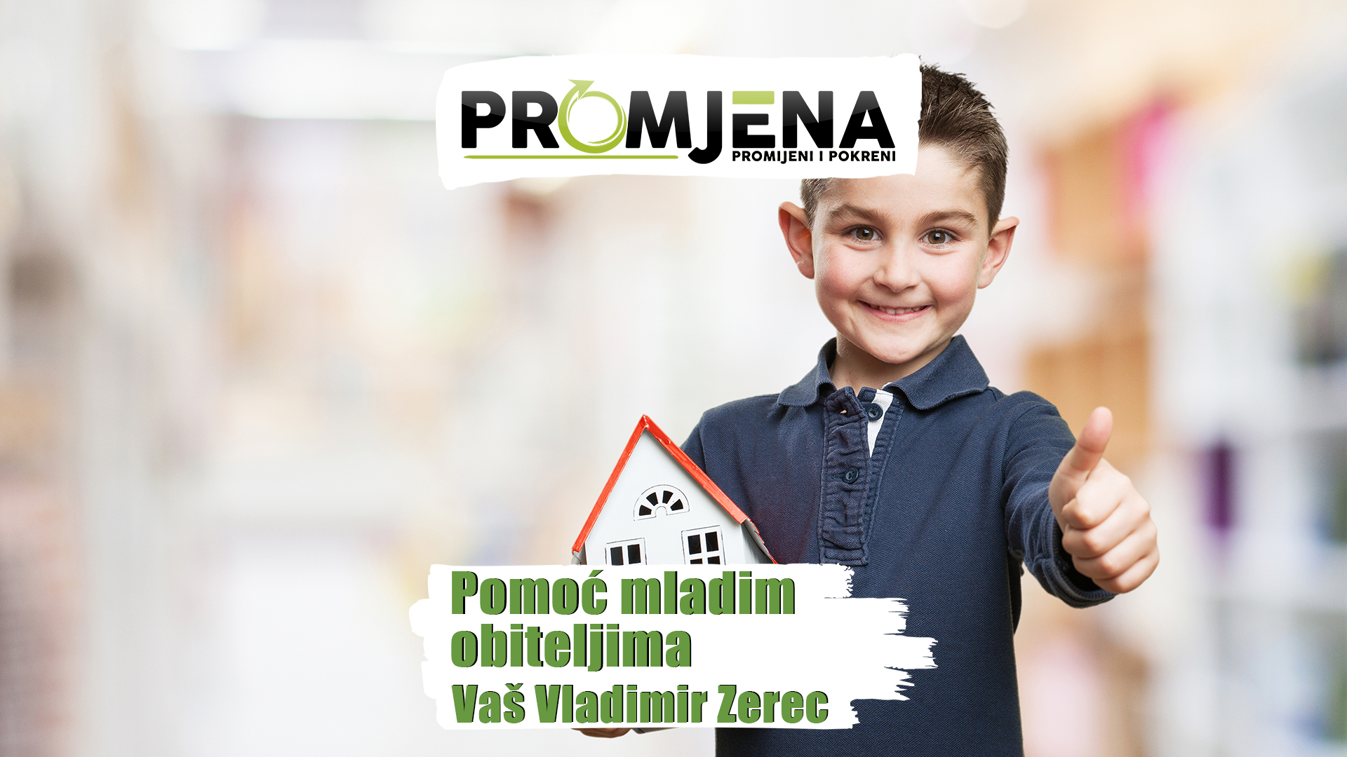 Isto tako jedan od važnijih segmenata demografskog razvoja i obnove je kvalitetno i sigurno stambeno zbrinjavanje mladih obitelji. Velika olakšica za mlade obitelji prilikom kupnje ili izgradnje prve nekretnine je i oslobađanje plaćanja komunalnog doprinosa u cijelosti koju želim osigurati. Isto tako treba osigurati poticaje za mlade obitelji za rušenje i obnovu starih kuća te gradnju i kupnju prve nekretnine. Besplatan smještaj djece u jaslicama i vrtićima, odnosno koje subvencije su potrebne obiteljima s više djece prema kategorizaciji.